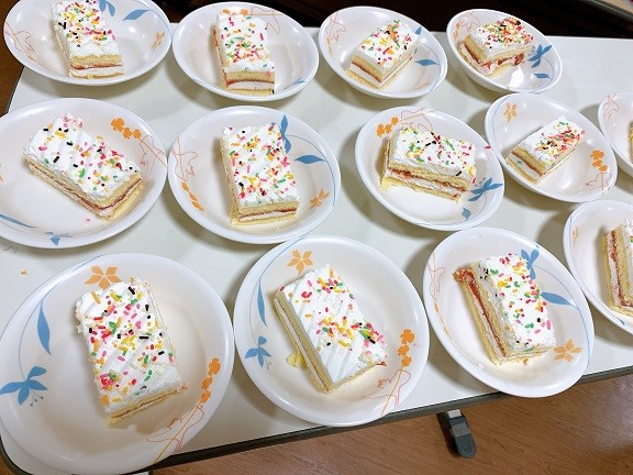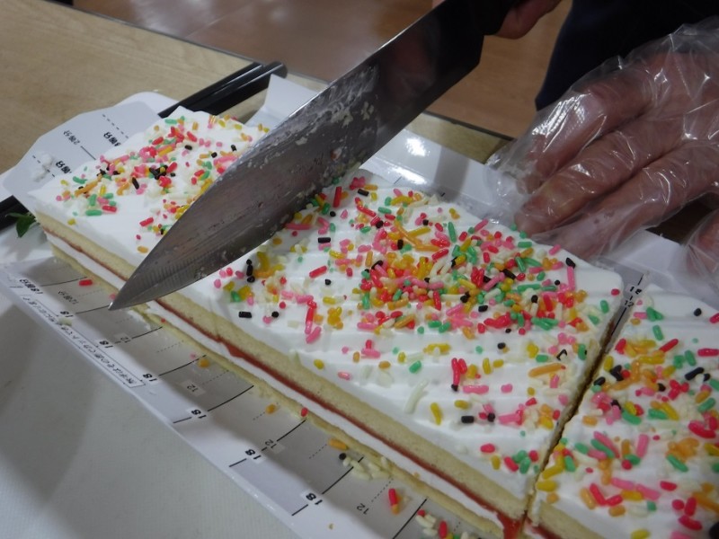 まずは、ケーキを人数分にカットし、