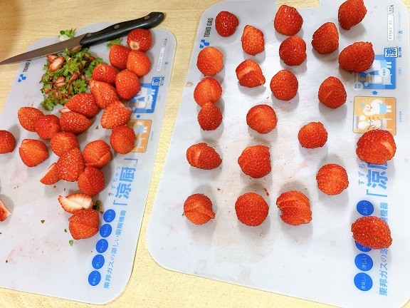 いちごも飾り付け用にカットします🍓