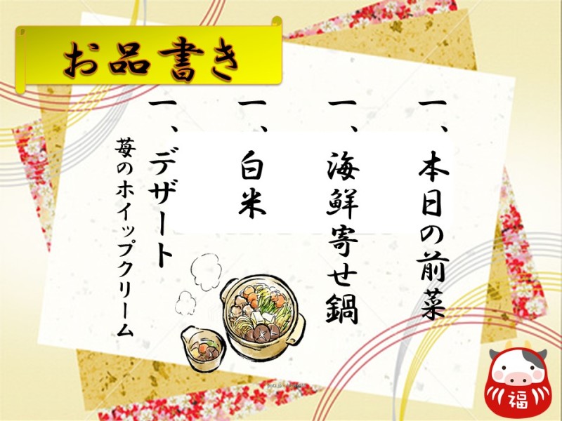 今月のメニューはこちらです🎍