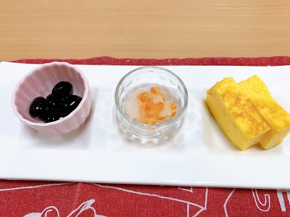 黒豆、イクラおろし、たまご焼きとなっています✨