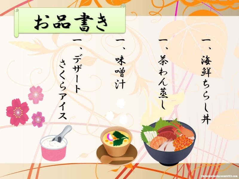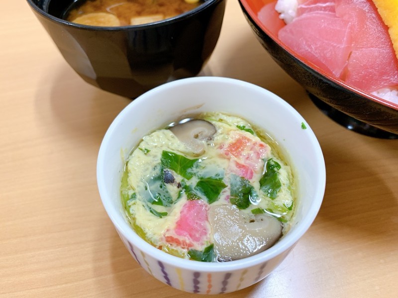 サイドメニューは、温かい茶碗蒸しに、味噌汁、