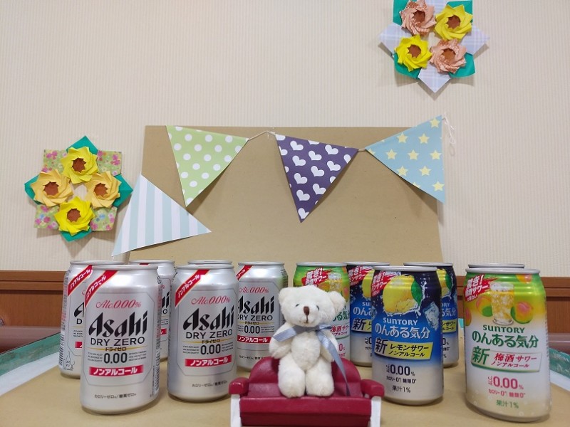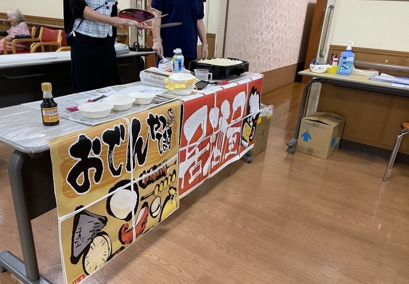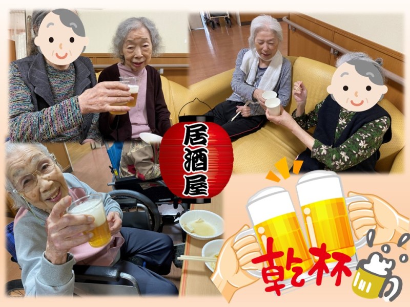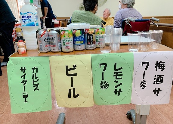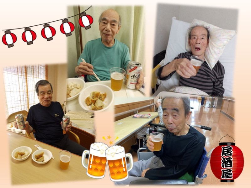 8月某日、入所フロアで「居酒屋レク」を行いました🏮