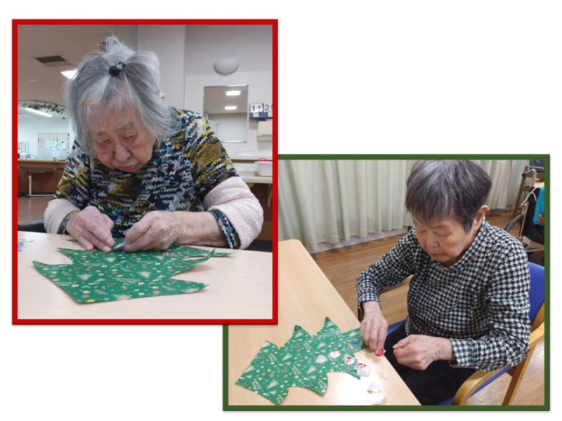 入所フロアでもクリスマスツリー作りが行われていました!