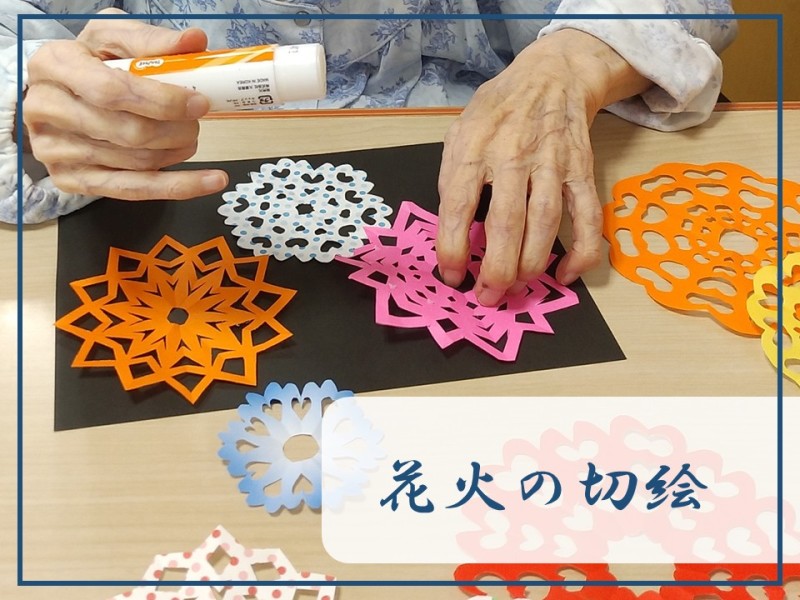 夏の季節らしい、花火の切り絵貼りを行いました!